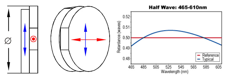 • λ/4 and λ/2, Retardance Tolerance: λ/300